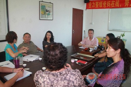 总裁胡煜、总裁高级顾问含笑、副总裁刘宣妤、杨萍、东方晟璨、曹娟、总裁办主任刘丽贤和香港关心下一代慈善基金协会外事总监严道容先生、董事局秘书唐素芬在爸妈在线总部会议室座谈