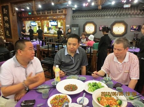 交流后,各位老总在友好的气氛中共进晚餐。