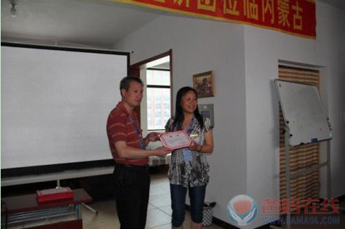 胡煜总裁为内蒙古自治区督委兼任呼市督委朱新琴老师颁发聘书