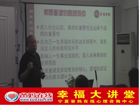 6月23日,宁夏爸妈在线心理咨询中心筹备的《孩子成长不同阶段的力量特征及应对策略》讲座顺利举办。此次我中心邀请到生命力学创始人贾常真先生到宁夏为家长、老师、学生讲学,并开展咨询活动。
