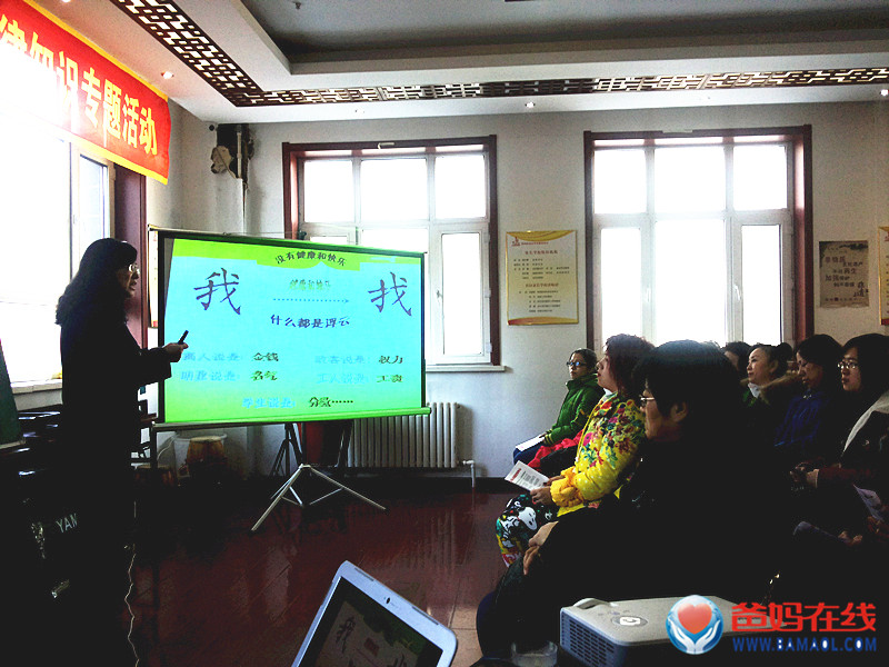 今天是正月元宵节,大街小巷到处是张灯结彩,冰城充满着浓浓的节日气氛。为了迎接三八妇女节的到来,3月5日上午8:30~10:30,应哈尔滨市南岗区繁荣社区的邀请,爸妈在线黑龙江省心身健身咨询中心陈景英主任在去爸妈在线总部开会之前,抽出宝贵时间,为哈尔滨市繁荣社区花园街道办事处所辖区的社区主任、社区妇女干部及部分居民做了一场《平和心态 健康人生》的心理公益讲座。