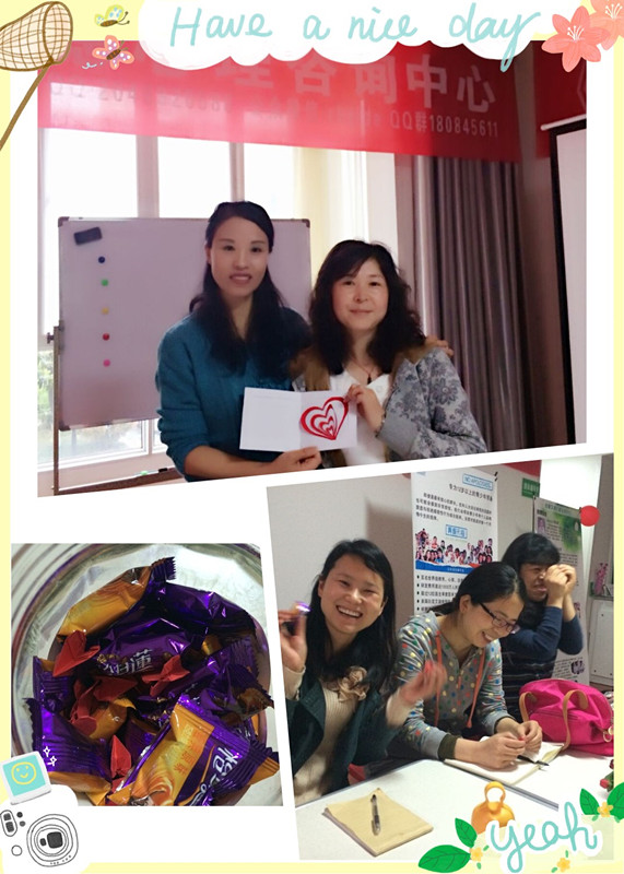 整个课程中,大家都很积极的互动、分享;最后,朱老师还为大家准备了爱心糖果,大家都一一回应了她一个美美的拥抱。