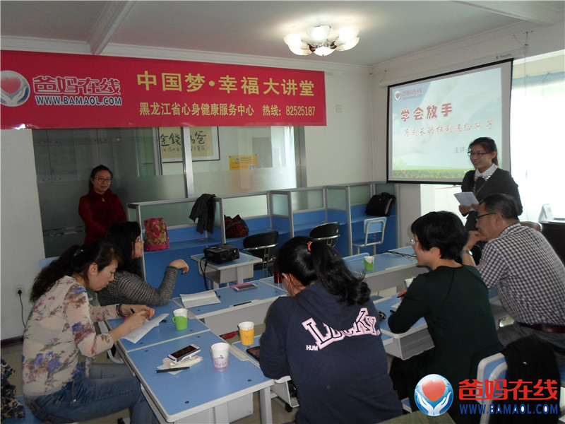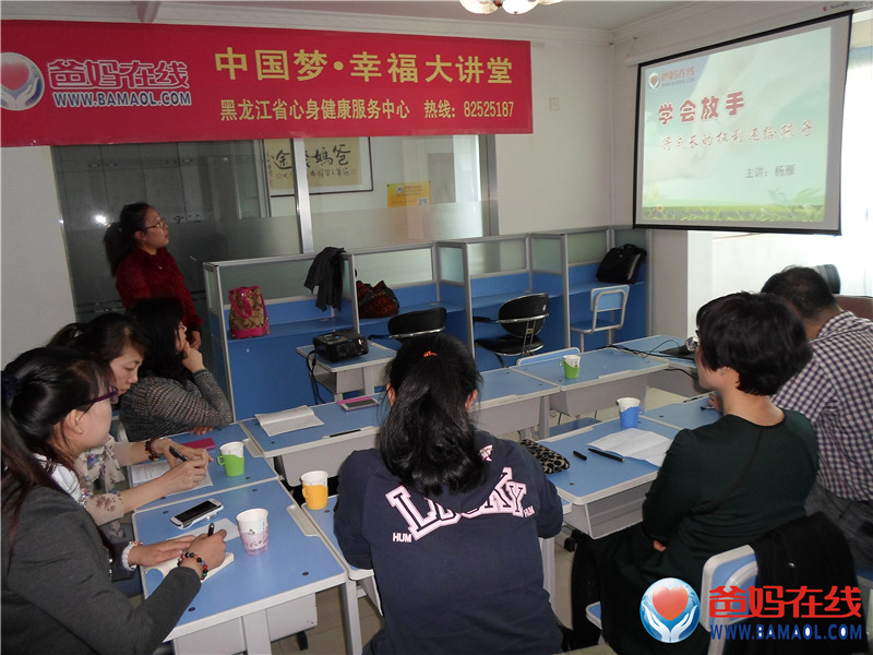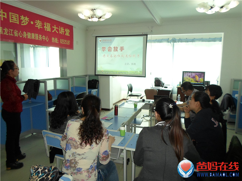 2015年4月25日下午2:00,爸妈在线黑龙江省心身健康咨询中心家庭教育讲师团第三次学习成长课,在中心的会议室举行,主题为“学会放手——孩子才会成长”。