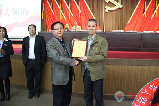 现场,华人频道副总编罗洪泉授予爸妈在线战略合作牌匾
