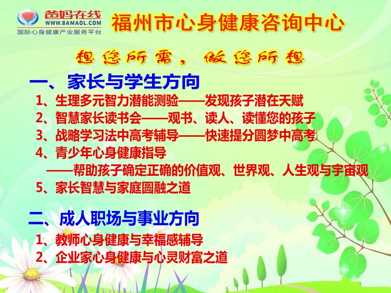 1、成本服务费:1800元。包括报告运作成本及后续跟踪服务,将提供十多分钟的催眠冥想录音文件,以避免现场激动,过后不动,还将定期跟踪直到考试结束,期间,学生家长可随时向跟踪指导老师咨询;