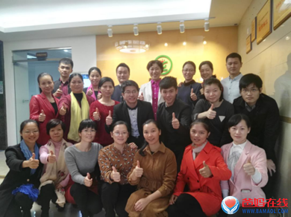 爸妈在线董事局副主席吕明臻(后排右四)、养正廖总经理(右五)与广州养正公司部分工作人员合影