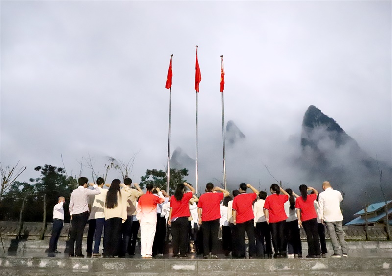 10月1日清晨6点11分,为迎接伟大祖国71华诞,爸妈在线桂林基地全体工作人员,在爸妈在线创始人、董事局主席夏建国先生的带领下,举行庄严的升旗仪式。