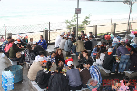 在体验完了精彩刺激的战役后,许多人也都感到了一些饥饿。在导游的带领下,大家接着前往了西冲海滩进行烧烤。点燃木炭,搭上烧烤架,大家围坐在一起,一家人同饮共食,其乐融融。