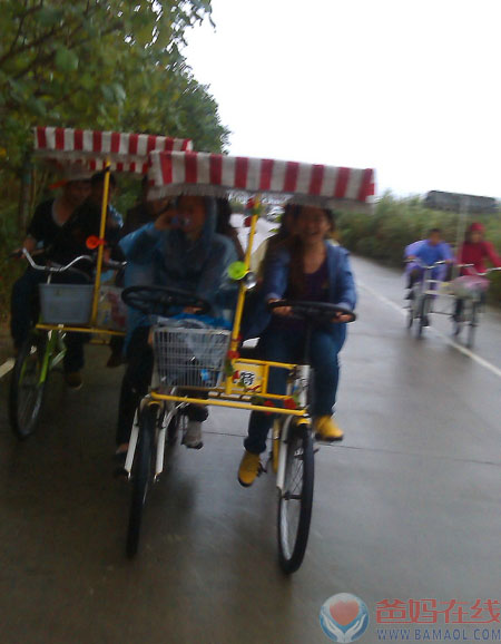 大家踩着单车沿着公路慢行