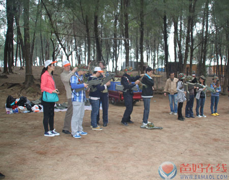 在稍稍驻足观看了美丽的海景之后,在导游的带领下,一行人前往了这次cs野战的场地。到达场地之后,在教练的引导下,所有员工和家属分别被分成红队和蓝队。接下来,教官为大家详细的介绍这次cs野战的规则和装备的使用方法。在熟悉了所有注意事项后,大家互相协助佩戴装备。本次cs野战一共分为攻防战和斩首行动两个战役。进入战区后,各队队长首先布置本次的作战任务。之后大家就开始穿梭在丛林、废墟和壕沟之间,体验了一场没有硝烟也十分刺激的奋战。由于红队出色的战略布置和精彩的配合,两次战役都以红方取胜。通过这两次战役,大家懂得了在工作中决策、执行、配合的重要性。