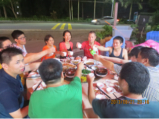 最难忘的是海鲜大餐:先上一大海碗小鱼青菜豆腐汤,看着就溜口水。新鲜的海虾,沾点酱料,鲜得不得了。油炸螃蟹、清蒸海鱼。油煎豆腐......,全是我爱吃的,算了,不减肥了,敞开肚皮,吃!我感觉我变年轻了,变得和这些年轻的小孩子一样了,想吃就吃。正在狼吞虎咽之际,胡总喊了句:慢点吃,还有菜。回头一看,胡总正忙着为大家叫菜,还紧着喊:有两个人不吃蒜,再来盘红薯叶,要清炒的。一种幸福的有家的感觉油然而生。